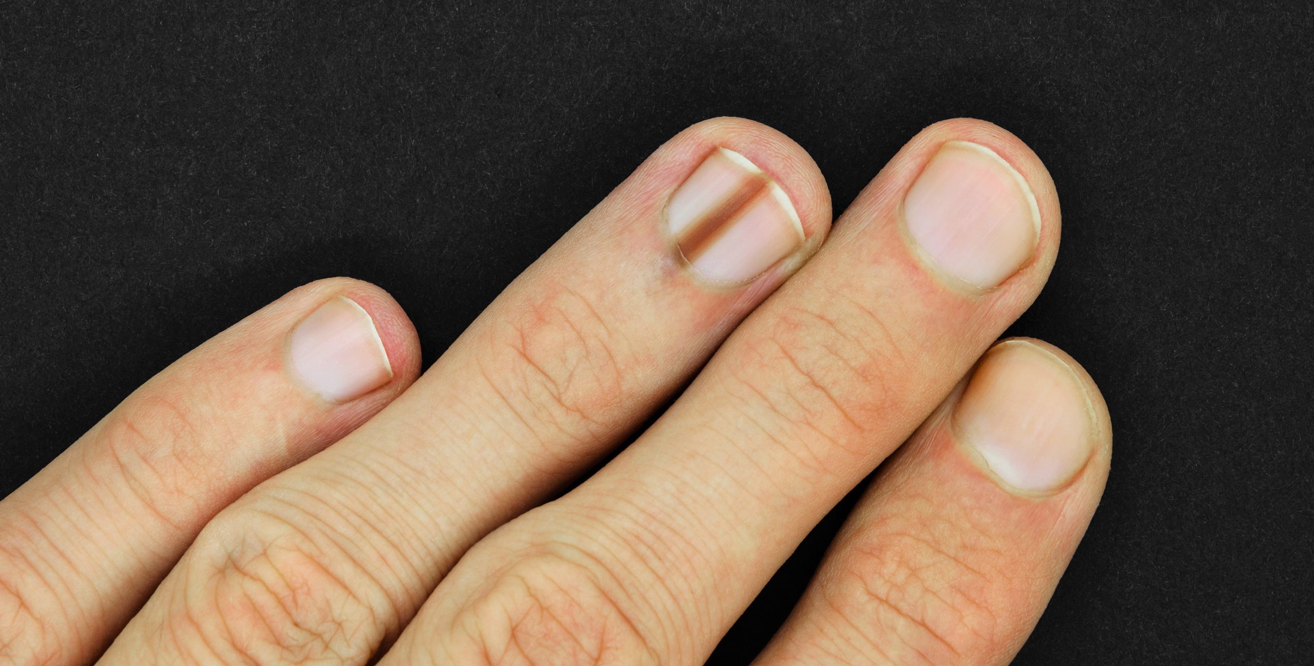 Sie haben eine dunkle Linie oder auffällige Verfärbung an einem Finger- oder Zehennagel bemerkt?